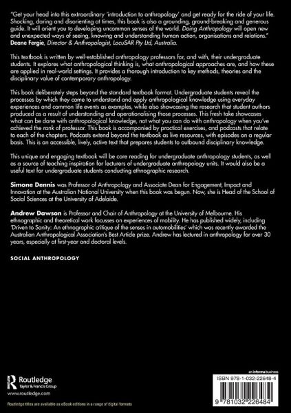 'Get your head into this extraordinary 'introduction to anthropology' and get ready for the ride of your life. Shocking, daring and disorienting at times, this book is also a grounding, ground-breaking and generous guide. It will orient you to developing uncommon senses of the world. Doing Anthropology will open new and unexpected ways of seeing, knowing and understanding human action, organisations and relations.'