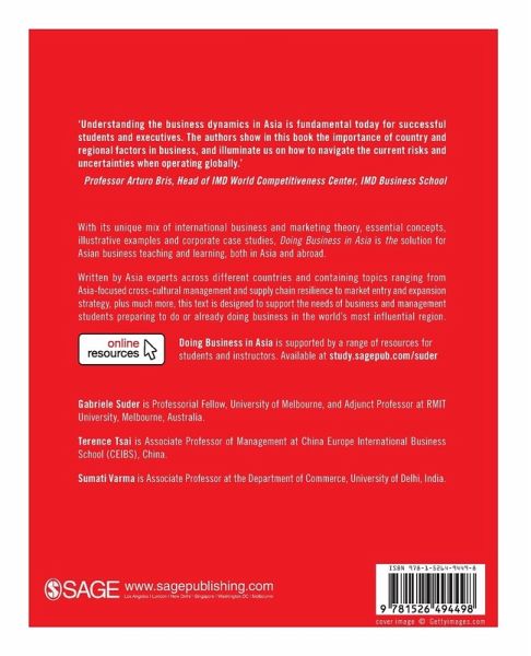 From the author of Doing Business in Europe (SAGE, 2018), Gabriele Suder has teamed up with Sumati Varma based in India, and Terence Tsai from China to bring this comprehensive solution for Asian business teaching and learning. The book offers a highly productive mix of international business and marketing theory, and is packed with pedagogical tools to engage and develop understanding, including two full-length corporate case studies per chapter.