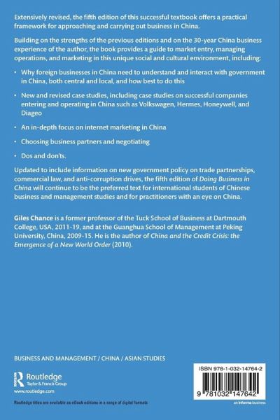 Why foreign businesses in China need to understand and interact with government in China, both central and local, and how best to do thisNew and revised case studies, including case studies on successful companies entering and operating in China such as Volkswagen, Hermes, Honeywell and DiageoAn in-depth focus on internet marketing in ChinaChoosing business partners and negotiatingDos and don'ts.