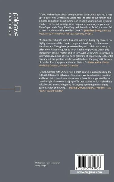 'Doing Business with China offers a crash course in understanding the cultural differences between Chinese and Western business practices and how vital it is not to underestimate these. It is supported by factbased insights into recent high-profile case studies which make this a valuable and entertaining read for anyone venturing into or doing business with or in China.' - Harold Dyrvik, Regional President, AsiaPacific, Bacardi Limited