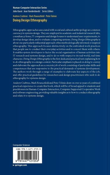 Ethnography is now a fundamental feature of design practice, taught in universities worldwide and practiced widely in commerce. Despite its rise to prominence a great many competing perspectives exist and there are few practical texts to support the development of competence. Doing Design Ethnography elaborates the ethnomethodological perspective on ethnography, a distinctive approach that provides canonical 'studies of work' in and for design. It provides an extensive treatment of the approach, with a particular slant on providing a pedagogical text that will support the development of competence for students, career researchers and design practitioners. It is organised around a complementary series of self-contained chapters, each of which address key features of doing the job of ethnography for purposes of system design. The book will be of broad appeal to students and practitioners in HCI, CSCW and software engineering, providing valuable insights as to how to conduct ethnography and relate it to design.