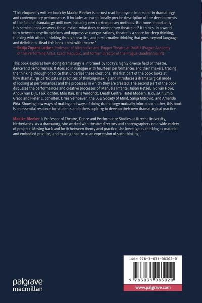 This book explores how doing dramaturgy is informed by today's highly diverse field of theatre, dance and performance. It does so in dialogue with fourteen performances and their makers, tracing the thinking-through-practice that underlies these creations. The first part of the book looks at how dramaturgs participate in practices of thinking-making and introduces a dramaturgical mode of looking at performances and the processes in which they are created. The second part of the book discusses the performances and creative processes of Manuela Infante, Julian Hetzel, Ivo van Hove, Anouk van Dijk, Falk Richter, Milo Rau, Kris Verdonck, Death Centre, Hotel Modern, Jr.cE.sA.r , Emio Greco and Pieter C. Scholten, Dries Verhoeven, the LGB Society of Mind, Sanja Mitrovic, and Amanda Piña. Showing how ways of making and ways of doing dramaturgy mutually inform each other, this book is an essential resource for students and others aspiring to develop their own dramaturgical practice.