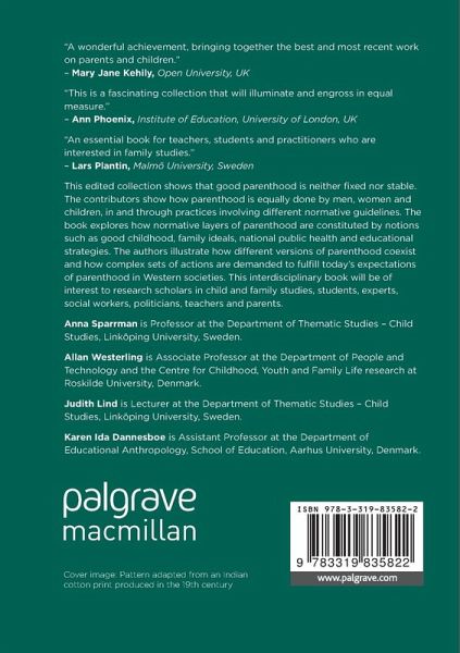 This edited collection shows that good parenthood is neither fixed nor stable. The contributors show how parenthood is equally done by men, women and children, in and through practices involving different normative guidelines. The book explores how normative layers of parenthood are constituted by notions such as good childhood, family ideals, national public health and educational strategies. The authors illustrate how different versions of parenthood coexist and how complex sets of actions are demanded to fulfil today's expectations of parenthood in Western societies. This interdisciplinary book will be of interest to research scholars in child and family studies, students, experts, social workers, politicians, teachers and parents.