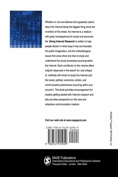 The Internet is a medium with great consequences for social and economic life. This book is written to help people discern in what ways it has commanded the public imagination, and the methodological issues that arise when one tries to study and understand the social processes occurring within it. The contributors offer original responses in the search for, and critique of, methods with which to study the Internet and the social, political, economic, artistic, and communicative phenomena occurring within and around it.