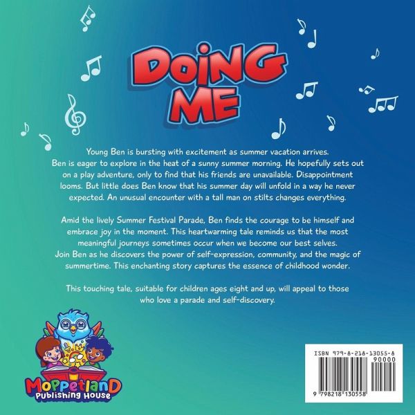 In this poem, a young boy named Ben eagerly awaits the first Saturday of his summer vacation. Ben is excited to go outside to play. After a quick meal, Ben rushes out and attempts to gather his friends for outdoor play. However, after visiting a few friends, he is met with various obstacles and finds that his friends can't join him. Disheartened, he sits on his porch, but soon, Ben hears the sound of a marching band approaching. Seizing the opportunity, Ben's mother takes him to watch the Summer Festival Parade. The colorful parade features marching bands, dancers, horses, clowns, and cartoon characters. The spectacle enthralls Ben, and he can't stay seated for long. He can't help joining in the excitement and starts dancing. He ends up joining the parade when a man on stilts invites him to join, transforming his initial fear into joy. Ben dances and marches with the parade, earning applause and encouragement from the crowd. Afterward, he reflects on the experience, feeling proud of himself and doing what made him happy. When Ben returns home, his friend, Jamal, is surprised to learn that Ben was part of the parade, and Ben proudly declares, "I was just doing me." This story underscores the idea that being true to oneself can lead to unexpected and joyful experiences. The poem encourages seizing unexpected opportunities, never knowing what delights we may find. This touching tale, suitable for children ages eight and up and will appeal to both young and mature hearts and those celebrating self-discovery.
