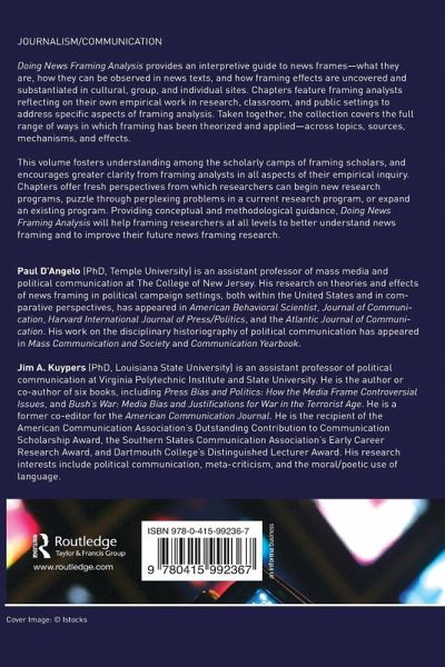 Doing News Framing Analysis provides an interpretive guide to news frames - what they are, how they can be observed in news texts, and how framing effects are uncovered and substantiated in cultural, group, and individual sites. Taken together, the collection covers the full range of ways in which framing has been theorized and applied-across topics, sources, mechanisms, and effects. It will help framing researchers at all levels to better understand news framing and to improve their future news framing research.