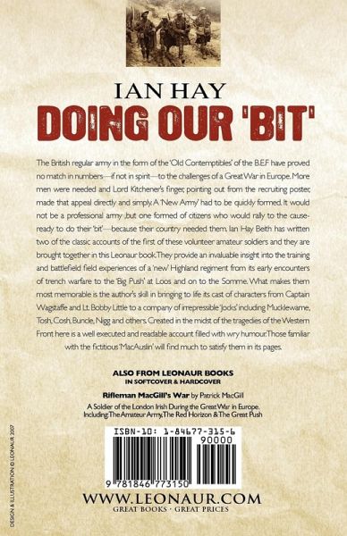 The British regular army in the form of the 'Old Contemptibles' of the B.E.F have proved no match in numbers-if not in spirit-to the challenges of a Great War in Europe. More men were needed and Lord Kitchener's finger, pointing out from the recruiting poster, made that appeal directly and simply. A 'New Army' had to be quickly formed. It would not be a professional army ,but one formed of citizens who would rally to the cause-ready to do their 'bit'-because their country needed them. Ian Hay Beith has written two of the classic accounts of the first of these volunteer amateur soldiers and they are brought together in this Leonaur book. They provide an invaluable insight into the training and battlefield field experiences of a 'new' Highland regiment from its early encounters of trench warfare to the 'Big Push' at Loos and on to the Somme. What makes them most memorable is the author's skill in bringing to life its cast of characters from Captain Wagstaffe and Lt. Bobby Little to a company of irrepressible 'Jocks' including Mucklewame, Tosh, Cosh, Buncle, Nigg and others. Created in the midst of the tragedies of the Western Front here is a well executed and readable account filled with wry humour. Those familiar with the fictitious 'MacAuslin' will find much to satisfy them in its pages.