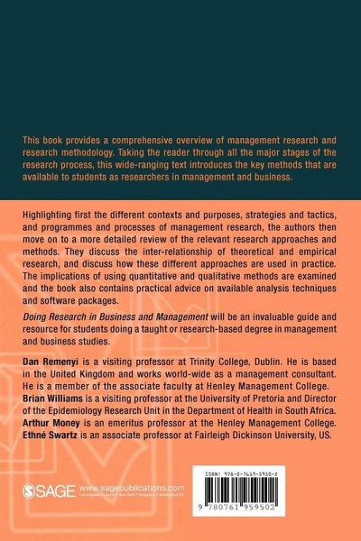 PART ONE: CONTEXT AND PROCESS Business and Management Research in Perspective Philosophical Background to Research Research Strategies and Tactics The Research Programme and Process PART TWO: APPROACH, METHOD AND DATA The Positivist Approach to Empirical Research Phenomenology: The Non-Positivist Approach The Research Process Collecting Empirical Data The Questionnaire The Case Study The Sample Statistical Analysis PART THREE: REPORTING RESEARCH Ethical Considerations Writing Up the Research Evaluation of Masters and Doctoral Degrees