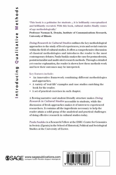 Doing Research in Cultural Studies outlines the key methodological approaches to the study of lived experience, texts and social contexts within the field of cultural studies. It offers a comprehensive discussion of classical methodologies and introduces the reader to more contemporary debates that have argued for new ethnographic, poststructuralist and multi-scape research methods. Through a detailed yet concise explanation, the reader is shown how these methodologies work and how their outcomes may be interpreted.