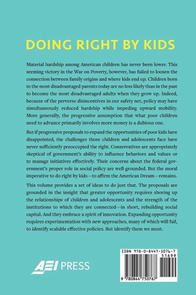 Material hardship among American children has never been lower. This seeming victory in the War on Poverty, however, has failed to loosen the connection between family origins and where kids end up. Children born to the most disadvantaged parents today are no less likely than in the past to become the most disadvantaged adults when they grow up. Indeed, because of the perverse disincentives in our safety net, policy may have simultaneously reduced hardship while impeding upward mobility. More generally, the progressive assumption that what poor children need to advance primarily involves more money is a dubious one. But if progressive proposals to expand the opportunities of poor kids have disappointed, the challenges those children and adolescents face have never sufficiently preoccupied the right. Conservatives are appropriately skeptical of government's ability to influence behaviors and values or to manage initiatives effectively. Their concerns about the federal government's proper role in social policy are well-grounded. But the moral imperative to do right by kids--to affirm the American Dream--remains. This volume provides a set of ideas to do just that. The proposals are grounded in the insight that greater opportunity requires shoring up the relationships of children and adolescents and the strength of the institutions to which they are connected--in short, rebuilding social capital. And they embrace a spirit of innovation. Expanding opportunity requires experimentation with new approaches, many of which will fail, to identify scalable effective policies. But identify them we must.