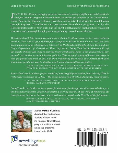JAMES JILER offers an engaging personal account of running a highly successful horticultural job-training program at Rikers Island, the largest jail complex in the United States. Doing Time in the Garden features curriculum and practical strategies for rehabilitation through in-prison GreenHouse and post-release GreenTeam programs run by the Horticultural Society of New York. It is the only book that shows firsthand how vocational education and meaningful employment in gardening can reduce recidivism. This elegant book tells an inspirational story of a horticultural program in a most unlikely location, New York City's forbidding jail complex on Rikers Island. On one level, the book documents a unique collaboration between The Horticultural Society of New York and the City's Department of Correction. More important, Doing Time in the Garden will lift the spirits of those who wish to nourish tender seedlings of hope in the dark forests of our nation's retributive criminal justice policies. This story of young offenders learning to care for plants and trees in jail and then translating those skills into horticultural jobs back home points the way to similar, much needed innovations in justice. >James Jiler's book outlines perfect models of meaningful green-collar jobs training. This is restorative economics at its best--the surest path to safe streets and peaceful communities. >Doing Time in the Garden makes a powerful statement for the opportunities created when people and nature interact. James Jiler writes a stirring account of his work at Rikers and its transforming impact on the lives of men and women caught in the New York City jail system. >Author JAMES JILER has directed the Horticultural Society of New York's jail-to-street GreenHouse program at Rikers Island since the program's inception in 1997.