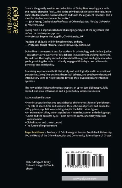 The new edition of Doing Time brings this widely recognized book up-to-date and provides an accessible and informed discussion of current debates around prisons and penal policy. Drawing on a range of international material the book provides a critical sociological analysis of developments in imprisonment.