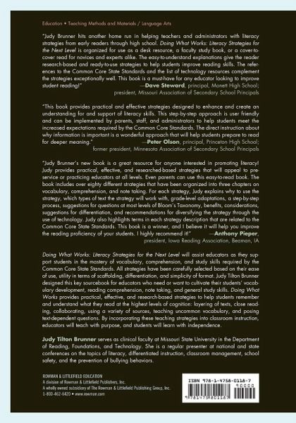 Doing What Works: Literacy Strategies for the Next Level will assist educators as they support students in the mastery of vocabulary, comprehension, and study skills required by the Common Core State Standards.