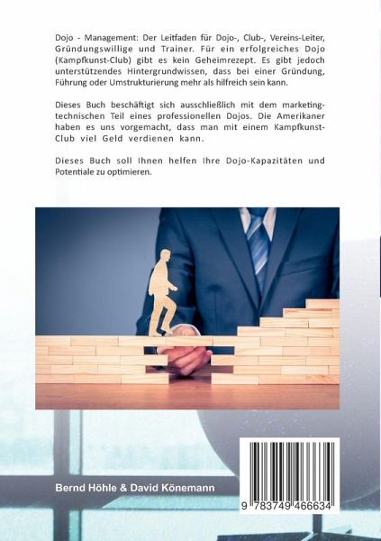 Dojo - Management: Der Leitfaden für Dojo-, Club-, Vereins-Leiter, Gründungswillige und Trainer. Für ein erfolgreiches Dojo (Kampfkunst-Club) gibt es kein Geheimrezept. Es gibt jedoch unterstützendes Hintergrundwissen, dass bei einer Gründung, Führung oder Umstrukturierung mehr als hilfreich sein kann. .Dieses Buch beschäftigt sich ausschließlich mit dem marketingtechnischen Teil eines professionellen Dojos. Die Amerikaner haben es uns vorgemacht, dass man mit einem Kampfkunst-Club viel Geld verdienen kann. . Dieses Buch soll Ihnen helfen Ihre Dojo-Kapazitäten und Potentiale zu optimieren.