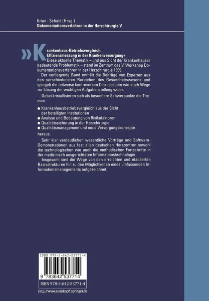 Mit dem hier vorgelegten Band "Dokumentations verfahren in der Herzchirurgie V" wird die 1995 begonnene Buchreihe fortgeschrieben: Diese enthält fast komplett die Beiträge - Vorträge, Poster- und Software-Demonstra tionen - dieser Arbeitstagungen, die ständig zunehmendes Interesse bei den speziell ange sprochenen Herzchirurgen, darüber hinaus aber auch bei Engagierten und Betroffenen aus den wesentlichen Institutionen des Gesundheitswesen fanden. Angeregt durch die Vorschrift der Bundespftegesatzverordnung zum 1. 1. 1998, Kran kenhaus-Betriebsvergleiche zur Ermittlung leistungsgerechter Budgets durchzuführen, stand die Thematik "Krankenhaus-Betriebsvergleich, Effizienzmessung in der Kranken versorgung" im Zentrum des V. Workshops, der entsprechend dem traditionellen Rhythmus diesmal im Februar 1999 im Universitätsklinikum Münster durchgeführt wurde. Bereits im Vorfeld dieser Tagung war überdeutlich zu erkennen, daß alle bis dahin vorgelegten Vergleiche der Kostenträger die Mediziner nicht zu überzeugen vermochten, vor allem deswegen, weil sie spezielle Versorgungs- und Patienten strukturen nur sehr marginal berücksichtigten. Von daher war die lebhafte Diskussion, die sich aus den Beiträ gen der verschiedenen Institutionen - des Gesetzgebers, der Kostenträger, der Kranken hausgesellschaft und sehr deutlich auch der Krankenhäuser selbst - entwickelte, erwartet intensiv und umfassend. Der Erfahrungsaustausch wurde vertieft durch teils grundsätzlich theoretische, aber auch klinisch-praktische Beiträge zur Bedeutung und Analyse der Risikofaktoren, wodurch die Hoffnungen, die angesprochenen Defizite hinsichtlich der Beschreibung und Differenzierung von Patientengruppen der verschiedenen Kliniken zu vermindern, gestützt wurden. Somit ist ohneZweifel eine kontinuierliche Entwicklung von der unerläßlichen, validen Basisdokumentation, ausgehend von der traditionellen Quali tätssicherung, über die Identifikation von Risikofaktoren hin zu einer möglichen Risiko adjustierung, zu beobachten.
