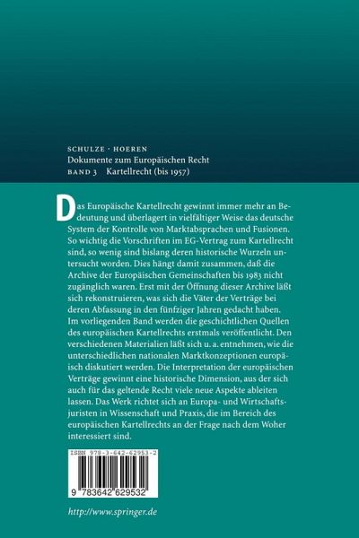 Das Europäische Kartellrecht gewinnt immer mehr an Bedeutung und überlagert in vielfältiger Weise das deutsche System der Kontrolle von Marktabsprachen und Fusionen. So wichtig die Vorschriften im EG-Vertrag zum Kartellrecht sind, so wenig sind bislang deren historische Wurzeln untersucht worden. Dies hängt damit zusammen, daß die Archive der Europäischen Gemeinschaften bis 1983 nicht zugänglich waren. Erst mit der Öffnung der Archive läßt sich rekonstruieren, was sich die Väter der Verträge bei deren Abfassung in den fünfziger Jahren gedacht haben. Im vorliegenden Band werden die geschichtlichen Quellen des europäischen Kartellrechts erstmals veröffentlicht. Den verschiedenen Materialien läßt sich u.a. entnehmen, wie die unterschiedlichen nationalen Marktkonzeptionen europäisch diskutiert werden. Die Interpretation der europäischen Verträge gewinnt eine historische Dimension, aus der sich auch für das geltende Recht viele neue Aspekte ableiten lassen. Das Werk richtet sich an Europa- und Wirtschaftsjuristen in Wissenschaft und Praxis, die im Bereich des Europäischen Kartellrechts and der Frage nach dem Woher interessiert sind.