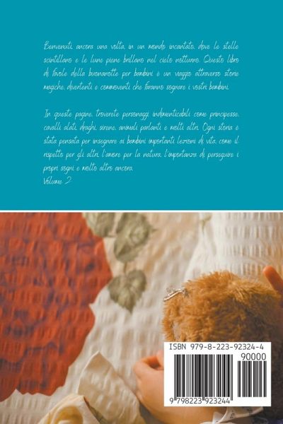 Benvenuti, ancora una volta, in un mondo incantato, dove le stelle scintillano e le lune piene brillano nel cielo notturno. Questo libro di favole della buonanotte per bambini è un viaggio attraverso storie magiche, divertenti e commoventi che faranno sognare i vostri bambini. In queste pagine, troverete personaggi indimenticabili come principesse, cavalli alati, draghi, sirene, animali parlanti e molti altri. Ogni storia è stata pensata per insegnare ai bambini importanti lezioni di vita, come il rispetto per gli altri, l'amore per la natura, l'importanza di perseguire i propri sogni e molto altro ancora. Volume 2