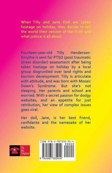 When Tilly and Jane Doll are taken hostage on holiday, they decide to tell the world their version of the truth and what justice is all about. Fourteen-year-old Tilly Henderson-Smythe is articulate with attitude, and was born with Mosaic Down's Syndrome. But she's not sleeping. Her parents and school are worried. She is sent for PTSD (post traumatic stress disorder) assessment after being taken hostage on holiday by a local group disgruntled over land rights and tourism development. With a secret passion for dodgy websites, and an appetite for just retribution, Tilly's view of complex issues goes viral. Her doll, Jane, is her best friend, confidante and the namesake of her website.