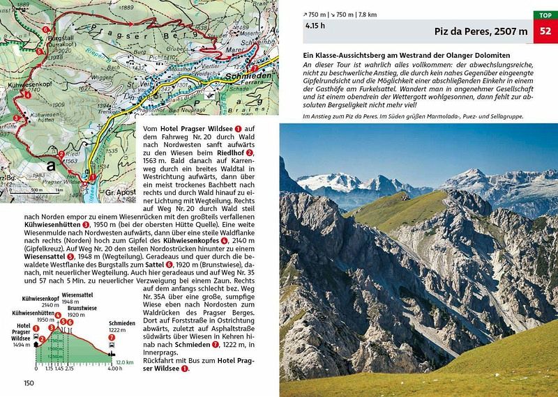 Dolomiten-Kenner Franz Hauleitner hat eine gelungene Mischung aus bekannten Highlights und versteckten Perlen zusammengestellt. Die meisten Touren sind leicht bis mittelschwer, einige auch anspruchsvoller - ideal für genussvolles Wandern mit Tiefblick.