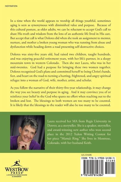 In a time when the world appears to worship all things youthful, sometimes aging is seen as synonymous with diminished value and purpose. Because of this cultural posture, as older adults, we can be reluctant to accept God's call to share His truth and wisdom from the lens of an authentic life lived in His care. But accept that call is what Dolores did when she took an assignment to mentor, nurture, and mother a broken young woman who was running from abuse and dysfunction while heading down a road presenting self-destructive choices. Dolores was sixty-five years old, had raised two children, taught hundreds, and was enjoying peaceful retirement years, with her life's partner, in a sleepy mountain town in western Colorado. Then she met Laura, who was in her mid-twenties. God had a purpose for bringing these two women together. Dolores recognized God's plans and committed herself to being Christ's hands, feet, and heart on the road to turning a hurting, frightened, and angry spiritual refugee into a woman of God, wife, mother, artist, and scholar. As you follow the narrative of their thirty-five-year relationship, it may change the way you see beauty and purpose in aging. And it may convince you of or reinforce your belief in the God who spares no effort when reaching out to the broken and lost. The blessings to both women are too many to be counted. It is likely that the blessings to the reader will also be too many to be counted.