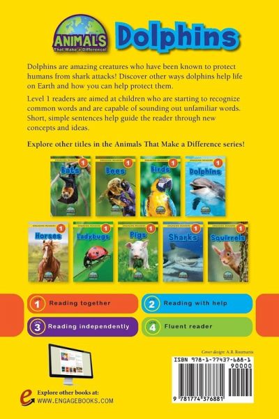 Dolphins are amazing creatures who have been known to protect humans from shark attacks! Discover other ways dolphins help life on Earth and how you can help protect them. Level 1 readers are aimed at children who are starting to recognize common words and are capable of sounding out unfamiliar words. Short, simple sentences help guide the reader through new concepts and ideas.