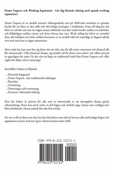 Doma Vaquera och Working Equitation - Lär dig klassisk ridning med spansk working equitation! Doma Vaquera är en särskilt intensiv ridningsteknik som på 1600-talet användes av spanska herdar för att klara av den tuffa och ofta farliga terrängen i Andalusien. Fram till idag har det blivit en teknik som mer än någon annan ridteknik visar hur starkt bandet mellan två individer, och följaktligen mellan ryttare och deras hästar, kan vara. Work riding har blivit en veritabel dans, där åskådare över hela världen fascineras av en särskilt vild och samtidigt så elegant teknik som man inte kan se någon annanstans. Men exakt hur kan man lära sig detta sätt att rida, som får allt större entusiasm och därmed allt fler intresserade? Vilka hästraser lämpar sig särskilt väl för detta svåra arbete och vilket uttryck är egentligen det rätta? Är det värt att köpa en traditionell sadel från Doma Vaquera och vilka regler bör följas vid en turnering? Innehållet i boken är följande:Historisk bakgrund Doma Vaquera - den traditionella ridningen Rätt häst Utrustning Turneringar och evenemang Excursus: Arbetande ridning Den här boken är skriven för alla som är intresserade av att återuppliva denna gamla arbetsridning. Detta kan dock väcka en del frågor och särskilt unga ryttare som verkligen har blivit förälskade i denna teknik blir ofta förtvivlade. För att se till att detta inte sker har den här boken som mål att besvara alla nödvändiga frågor och uppmuntra ryttare att kasta sig in i denna fascinerande värld.