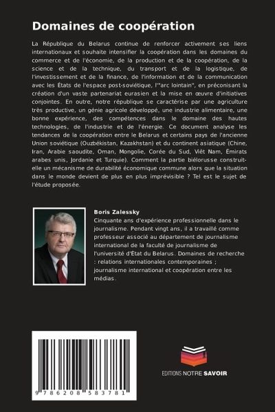 La République du Belarus continue de renforcer activement ses liens internationaux et souhaite intensifier la coopération dans les domaines du commerce et de l'économie, de la production et de la coopération, de la science et de la technique, du transport et de la logistique, de l'investissement et de la finance, de l'information et de la communication avec les États de l'espace post-soviétique, l'"arc lointain", en préconisant la création d'un vaste partenariat eurasien et la mise en oeuvre d'initiatives conjointes. En outre, notre république se caractérise par une agriculture très productive, un génie agricole développé, une industrie alimentaire, une bonne expérience, des compétences dans le domaine des hautes technologies, de l'industrie et de l'énergie. Ce document analyse les tendances de la coopération entre le Belarus et certains pays de l'ancienne Union soviétique (Ouzbékistan, Kazakhstan) et du continent asiatique (Chine, Iran, Arabie saoudite, Oman, Mongolie, Corée du Sud, Viêt Nam, Émirats arabes unis, Jordanie et Turquie). Comment la partie biélorusse construit-elle un mécanisme de durabilité économique commune alors que la situation dans le monde devient de plus en plus imprévisible ? Tel est le sujet de l'étude proposée.