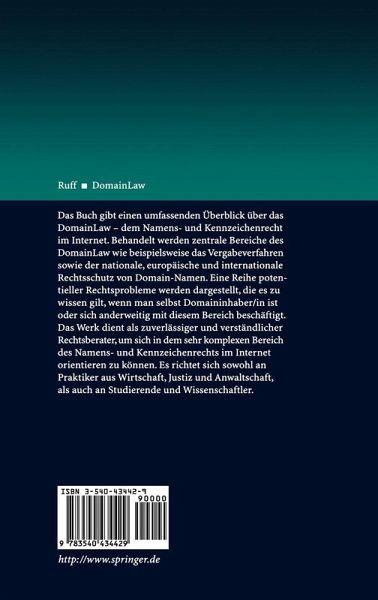 Das Buch - ein zuverlässiger und verständlicher Rechtsberater - gibt einen umfassenden Überblick über das DomainLaw - das Namens- und Kennzeichenrecht - im Internet. Z. B. über Vergabeverfahren oder den Rechtsschutz von nationalen, europäischen oder internationalen Domain-Namen. Zur Orientierung über diesen sehr komplexen Bereich werden für den eigenen Domaininhaber/in potientielle Rechtsprobleme dargestellt. Das Werk richtet sich sowohl an Praktiker aus Wirtschaft, Justiz und Anwaltschaft, als auch an Studierende und Wissenschaftler.