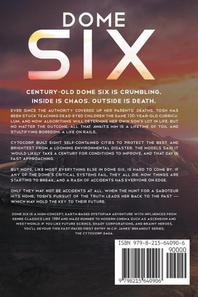 The discovery of a strange signal makes a young technician and his uncle question all they know about their utopian refuge. Now, they must solve the biggest mystery of all: Is there life beyond Dome Six? The Dome Project was meant to protect America's best and brightest from a climate catastrophe. When they lost contact with the outside world, all they could do was wait and hope. But four generations later, Dome Six is still waiting, and hope is in short supply. When a suspected saboteur threatens the safety of the Dome, Owen and his conspiracy-loving uncle uncover a mysterious signal that may point the way out. But a veil of lies has long obscured the Dome's secrets, and the ruling Authority will kill to protect them. As the only world they've ever known crumbles around them, Owen and his friends must stop the Authority and escape before the Dome becomes their tomb. Dome Six is a gripping and suspenseful dystopian novel with influences from Logan's Run to The Island and 1984. If you can relate to the search for hope and humanity in a world run amok, you'll devour this thought-provoking take on a near-future America.