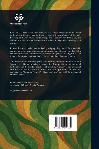 Richard L. Allen's "Domestic Animals" is a comprehensive guide to animal husbandry, offering a detailed history and description of essential livestock. Focusing on horses, mules, cattle, sheep, swine, poultry, and farm dogs, this volume provides invaluable directions for their management, breeding, and rearing. Explore time-tested techniques for feeding and preparing animals for a profitable market, alongside insights into common diseases and effective remedies. Allen meticulously covers the intricacies of dairy management, making this a vital resource for anyone interested in the care and handling of domestic animals. This meticulously prepared print republication preserves the wisdom of a bygone era, offering enduring knowledge for those passionate about animal husbandry and the timeless practices of farm life. Whether you're an animal enthusiast or simply curious about historical approaches to livestock management, "Domestic Animals" offers a wealth of practical information and historical context. This work has been selected by scholars as being culturally important, and is part of the knowledge base of civilization as we know it. This work is in the public domain in the United States of America, and possibly other nations. Within the United States, you may freely copy and distribute this work, as no entity (individual or corporate) has a copyright on the body of the work. Scholars believe, and we concur, that this work is important enough to be preserved, reproduced, and made generally available to the public. We appreciate your support of the preservation process, and thank you for being an important part of keeping this knowledge alive and relevant.