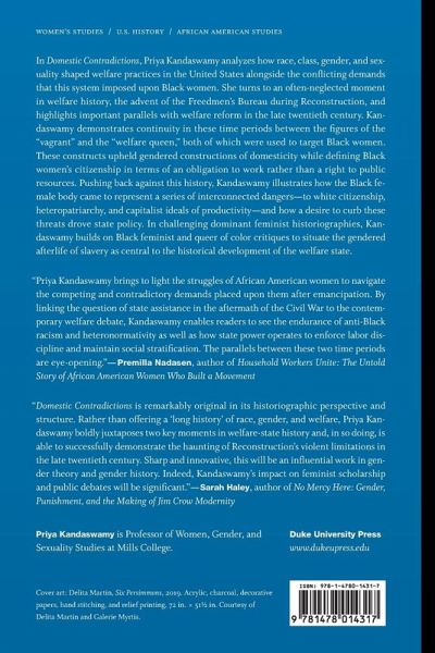 Priya Kandaswamy brings together two crucial moments in welfare history-the advent of the Freedmen's Bureau during Reconstruction and the Personal Responsibility and Work Opportunity Reconciliation Act of 1996-to show how they each targeted Black women through negative stereotyping and normative assumptions about gender, race, and citizenship.