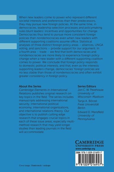 This Element examines how foreign policy responds to domestic political interests, and how, even as the interests supporting leaders change, democracies' foreign policies are no less stable than those of nondemocracies and often exhibit greater consistency.