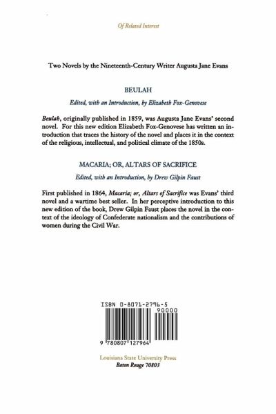 Moss's study of the novels of Caroline Gilman, Caroline Hentz, Maria McIntosh, Mary Virginia Terhune, and Augusta Jane Evans, challenges the "transhistorical view" of women's history and integrates women into the larger context of antebellum southern history.