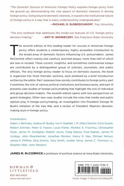 Consisting of twenty-two carefully selected essays by a distinguished group of leading experts-the seventh edition of this leading reader for courses in American foreign policy offers students an up-to-date, highly accessible introduction to the broad array of domestic factors influencing U.S. policymakers.