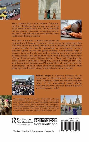 Many countries have a rich tradition of domestic travel and holidaying which not only predates but exceeds mass international travel. This is particularly the case in Asia where recent economic prosperity and trends in globalization have not merely spurred, but continue to shape traditions in domestic tourism. This book is the first to address specifically the continuities and changes in domestic tourism in Asia. It explores the ethos of domestic travel and holiday-making in order to understand the distinctive common strands that underlie conventional and contemporary tourism practices, against the local and global backdrop. A considerable range of countries is covered in the case studies, including those with patrimonial histories, namely China and India, the economically developed nation-state of Japan and the microstates of Taiwan, Singapore, Macao and Hong Kong, besides the coastal countries of Malaysia, Philippines, Laos and Vietnam, as well as the land-locked countries of Kyrgyzstan and Mongolia. The book presents some of the many interfaces of Asian cultural and natural heritages with tourism, while giving due considerations to today's political and economic realities.