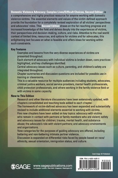 Domestic Violence Advocacy: Complex Lives/Difficult Choices, Second Edition is a comprehensive and highly practical resource for anyone working with domestic violence victims. The essential elements and values of the victim-defined approa
