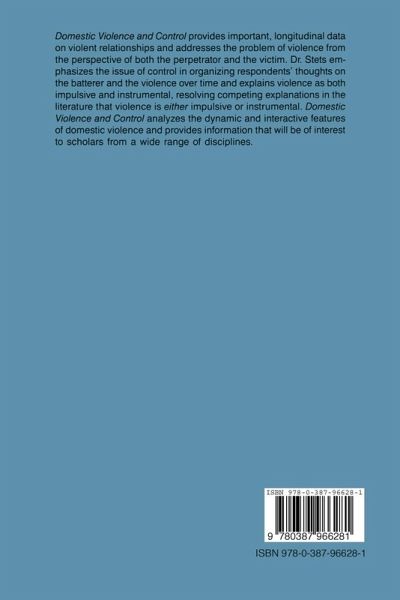 Domestic Violence and Control provides important longitudinal data on violent relationships and addresses the problem of violence from the perspective of both the perpetrator and the victim. The issue of control emerges as a central theme. Control plays a keyrole, firstly, in organizing the victim's thoughts with regard to the batterer, and, secondly, in cases of repeated acts of violence over a length of time. The study shows acts of violence to be both "impulsive" and "instrumental" and thereby refutes competing explanations in the literature that violence is either "impulsive" or "instrumental."