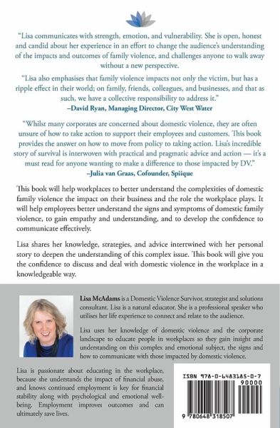 A business book to help workplaces to better understand the complexities of domestic violence and the impact on their business and the role the workplace plays, so employees no longer feel out of their depth. It will help employees better understand the signs and symptoms of domestic abuse, to gain empathy and understanding, and to develop the confidence to communicate effectively. Lisa shares her knowledge, strategies, and advice intertwined with her personal story to deepen the understanding of this complex issue. This book will give you the confidence to discuss and deal with domestic violence in the workplace in a knowledgeable way.