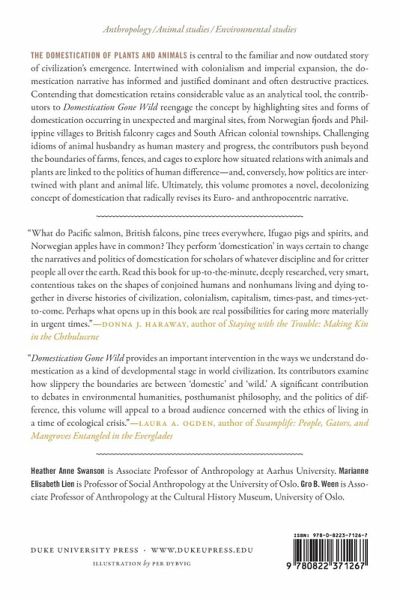 The domestication of plants and animals is central to the familiar and now outdated story of civilization's emergence. Intertwined with colonialism and imperial expansion, the domestication narrative has informed and justified dominant and often destructive practices. Contending that domestication retains considerable value as an analytical tool, the contributors to Domestication Gone Wild reengage the concept by highlighting sites and forms of domestication occurring in unexpected and marginal sites, from Norwegian fjords and Philippine villages to British falconry cages and South African colonial townships. Challenging idioms of animal husbandry as human mastery and progress, the contributors push beyond the boundaries of farms, fences, and cages to explore how situated relations with animals and plants are linked to the politics of human difference-and, conversely, how politics are intertwined with plant and animal life. Ultimately, this volume promotes a novel, decolonizing concept of domestication that radically revises its Euro- and anthropocentric narrative. Contributors. Inger Anneberg, Natasha Fijn, Rune Flikke, Frida Hastrup, Marianne Elisabeth Lien, Knut G. Nustad, Sara Asu Schroer, Heather Anne Swanson, Anna Lowenhaupt Tsing, Mette Vaarst, Gro B. Ween, Jon Henrik Ziegler Remme