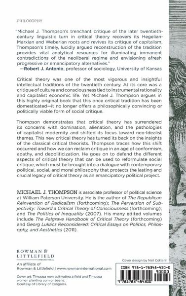 Critical theory was one of the most vigorous and insightful intellectual traditions of the twentieth-century. At its core was a critique of culture and consciousness tied to instrumental rationality and capitalist economic life. Yet, Michael J. Thompson argues in this highly original book that this once critical tradition has been domesticated - it no longer offers a philosophically convincing nor politically viable form of social critique. Thompson demonstrates that critical theory has surrendered its concerns with domination, alienation, and the pathologies of capitalist modernity and shifted its focus toward neo-Idealist themes. This new critical theory has turned its back on the insights of the classical critical theorists. Thompson traces how this shift occurred and how we can reclaim critique in an age of conformism, apathy, and depoliticization. He goes on to defend the different aspects of critical theory that can be used to reformulate social critique, one that must be brought into a dialogue with contemporary political, social and moral philosophy that protects the lasting and crucial legacy of critical theory as an emancipatory political project.