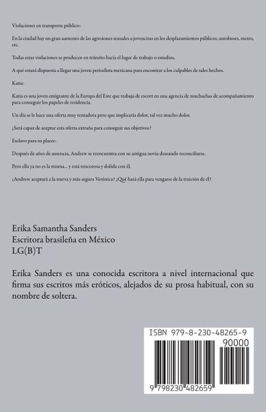 Violaciones en transporte público: En la ciudad hay un gran aumento de las agresiones sexuales a jovencitas en los desplazamientos públicos, autobuses, metro, etc. Todas estas violaciones se producen en tránsito hacía el lugar de trabajo o estudios. A qué estará dispuesta a llegar una joven periodista mexicana para encontrar a los culpables de tales hechos. Katia: Katia es una joven emigrante de la Europa del Este que trabaja de escort en una agencia de muchachas de acompañamiento para conseguir los papeles de residencia. Un día se le hace una oferta muy tentadora pero que implicaría dolor, tal vez mucho dolor. ¿Será capaz de aceptar esta oferta extraña para conseguir sus objetivos? Esclavo para su placer: Después de años de ausencia, Andrew se reencuentra con su antigua novia deseando reconciliarse. Pero ella ya no es la misma... y está rencorosa y dolida con él. ¿Andrew aceptará a la nueva y más segura Verónica? ¿Qué hará ella para vengarse de la traición de él?