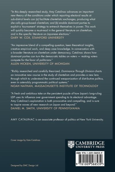 Explains why the politics of Japan is dominated by a single party: the Liberal Democratic Party (LDP). Amy Catalinac offers a new theory for how politicians competing under a particular set of institutions can cultivate clientelistic relationships with groups of voters, in which money is exchanged for votes.