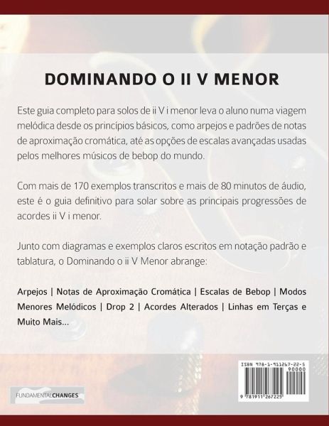 Este guia completo para solos de ii V i menor leva o aluno numa viagem melödica desde os princi¿pios bäsicos, como arpejos e padröes de notas de aproximac¿äo cromätica, ate¿ as opc¿öes de escalas avanc¿adas usadas pelos melhores müsicos de bebop do mundo. Com mais de 170 exemplos transcritos e mais de 80 minutos de äudio, este e¿ o guia definitivo para solar sobre as principais progressöes de acordes ii V i menor. Junto com diagramas e exemplos claros escritos em notac¿äo padräo e tablatura, o Dominando o ii V Menor abrange: Arpejos Notas de Aproximac¿äo Cromätica Escalas de Bebop Modos Menores Melödicos Drop 2 Acordes Alterados Linhas em Terc¿as e Muito Mais...