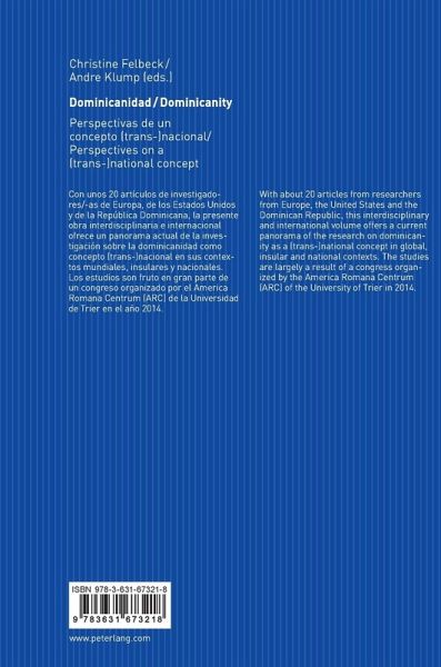Con unos 20 artículos de investigadores/-as de Europa, de los Estados Unidos y de la República Dominicana, la presente obra interdisciplinaria e internacional ofrece un panorama actual de la investigación sobre la dominicanidad como concepto (trans-)nacional en sus contextos mundiales, insulares y nacionales. Los estudios son fruto en gran parte de un congreso organizado por el America Romana Centrum (ARC) de la Universidad de Trier en el año 2014.
