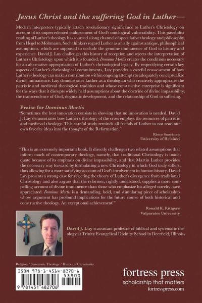 Modern interpreters typically attach revolutionary significance to Luthers Christology on account of its unprecedented endorsement of Gods ontological vulnerability. This passibilist reading of Luthers theology has sourced a long channel of speculative theology and philosophy, from Hegel to Moltmann, which regards Luther as an ally against antique, philosophical assumptions, which are supposed to occlude the genuine immanence of God to history and experience. David J. Luy challenges this history of reception and rejects the interpretation of Luthers Christology upon which it is founded. Dominus Mortis creates the conditions necessary for an alternative appropriation of Luthers christological legacy. By re-specifying certain key aspects of Luthers christological commitments, Luy provides a careful reassessment of how Luthers theology can make a contribution within ongoing attempts to adequately conceptualize divine immanence. Luther is demonstrated as a theologian who creatively appropriates the patristic and medieval theological tradition and whose constructive enterprise is significant for the ways that it disrupts widely held assumptions about the doctrine of divine impassibility, the transcendence of God, dogmatic development, and the relationship of God to suffering.