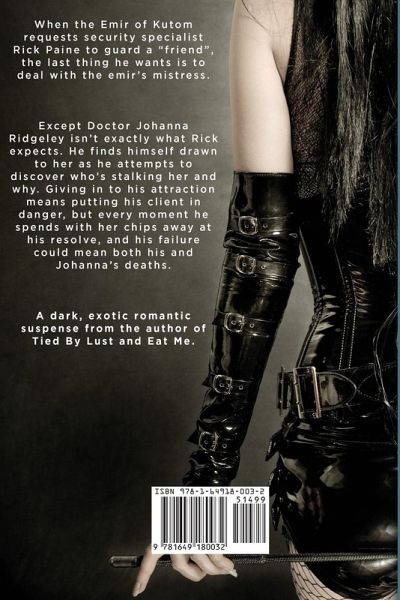 When the Emir of Kutom requests security specialist Rick Paine to guard a "friend", the last thing he wants is to deal with the emir's mistress. Except Doctor Johanna Ridgeley isn't exactly what Rick expects. He finds himself drawn to her as he attempts to discover who's stalking her and why. Giving in to his attraction means putting his client in danger, but every moment he spends with her chips away at his resolve, and his failure could mean both his and Johanna's deaths. A dark, exotic romantic suspense from the author of Tied By Lust and Eat Me.
