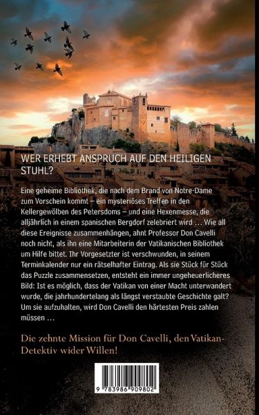 Wer erhebt Anspruch auf den Heiligen Stuhl? Eine geheime Bibliothek, die nach dem Brand von Notre-Dame zum Vorschein kommt - ein mysteriöses Treffen in den Kellergewölben des Petersdoms - und eine Hexenmesse, die alljährlich in einem spanischen Bergdorf zelebriert wird ... Wie all diese Ereignisse zusammenhängen, ahnt Professor Don Cavelli noch nicht, als ihn eine Mitarbeiterin der Vatikanischen Bibliothek um Hilfe bittet. Ihr Vorgesetzter ist verschwunden, in seinem Terminkalender nur ein rätselhafter Eintrag. Als sie Stück für Stück das Puzzle zusammensetzen, entsteht ein immer ungeheuerlicheres Bild: Ist es möglich, dass der Vatikan von einer Macht unterwandert wurde, die jahrhundertelang als längst verstaubte Geschichte galt? Um sie aufzuhalten, wird Don Cavelli den härtesten Preis zahlen müssen ... Die zehnte Mission für Don Cavelli, den Vatikan-Detektiv wider Willen!
