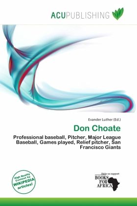 Please note that the content of this book primarily consists of articles available from Wikipedia or other free sources online. Donald Leon Choate (born July 2, 1938, at Potosi, Missouri) is a retired American professional baseball player. The right-handed pitcher appeared in four Major League games, all in relief, for the San Francisco Giants in 1960. He stood 6 feet (1.8 m) tall and weighed 185 pounds (84 kg). Choate was originally signed by the St. Louis Cardinals, and posted a 19 8 record in his second professional season with the Class C Billings Mustangs in 1957. After splitting the next year between Double-A and Triple-A Cardinal affiliates he was traded to Giants as a prospect as part of a major off-season trade that netted first baseman Bill White, future National League president, for the Redbirds.