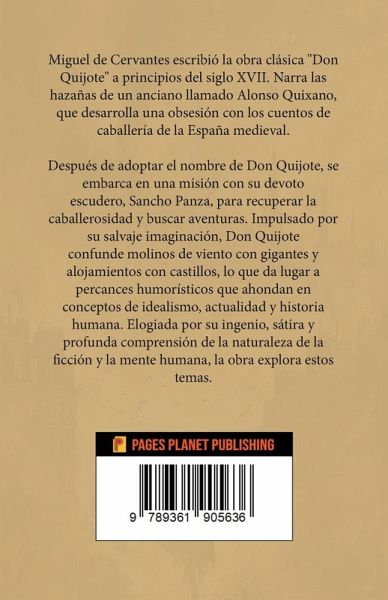Miguel de Cervantes escribió la obra clásica "Don Quijote" a principios del siglo XVII. Narra las hazañas de un anciano llamado Alonso Quixano, que desarrolla una obsesión con los cuentos de caballería de la España medieval. Después de adoptar el nombre de Don Quijote, se embarca en una misión con su devoto escudero, Sancho Panza, para recuperar la caballerosidad y buscar aventuras. Impulsado por su salvaje imaginación, Don Quijote confunde molinos de viento con gigantes y alojamientos con castillos, lo que da lugar a percances humorísticos que ahondan en conceptos de idealismo, actualidad y…mehr