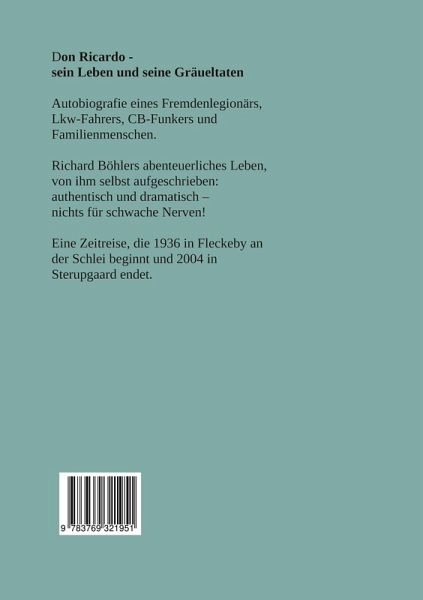 Autobiografie eines Fremdenlegionärs, Lkw-Fahrers, CB-Funkers und Familienmenschen. Richard Böhlers abenteuerliches Leben, von ihm selbst aufgeschrieben: authentisch und dramatisch, nichts für schwache Nerven! "In diesem Buch möchte ich meine Erlebnisse und auch meine Schandtaten erzählen, also meine Lebensgeschichte." (R. Böhler) Eine Zeitreise, die 1936 an der Schlei beginnt und 2008 in Sterupgaard endet. Richard Böhler hat 2003 begonnen, sein nahezu unglaubliches Leben aufzuschreiben, obwohl ihm das Schreiben schwerfiel, da er kaum eine Schule besuchte. Das Manuskript hinterließ er seinem Sohn. Seiner Schwiegertochter ist zu verdanken, dass dieses spannende zeitgeschichtliche Dokument jetzt veröffentlicht wird. Der Originaltext war quasi ohne Absätze und z.T. herausfordernd zu entziffern. Die Überschriften wurden beim Transkribieren ergänzt, so dass sich nun schon das Inhaltsverzeichnis wie ein Roman liest.